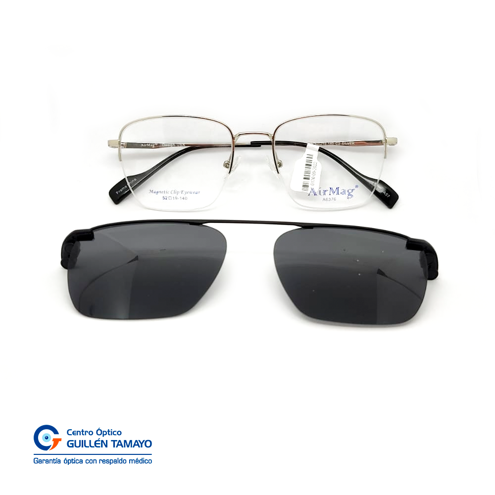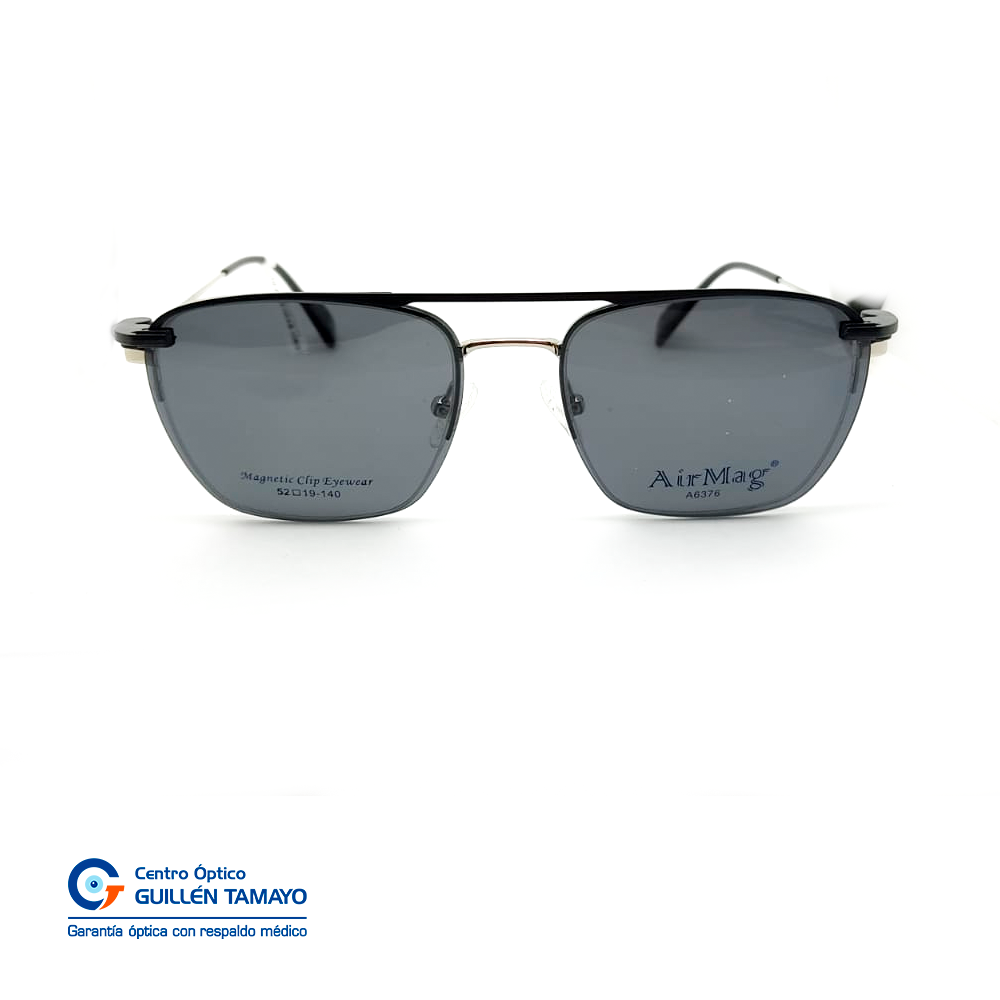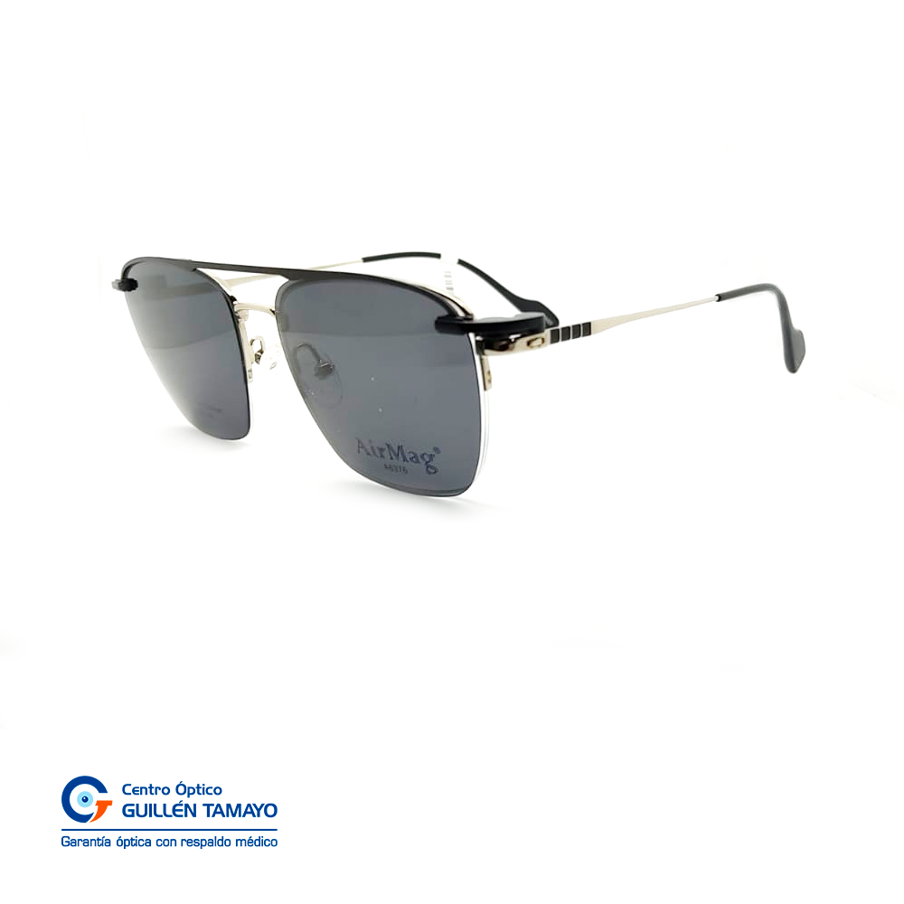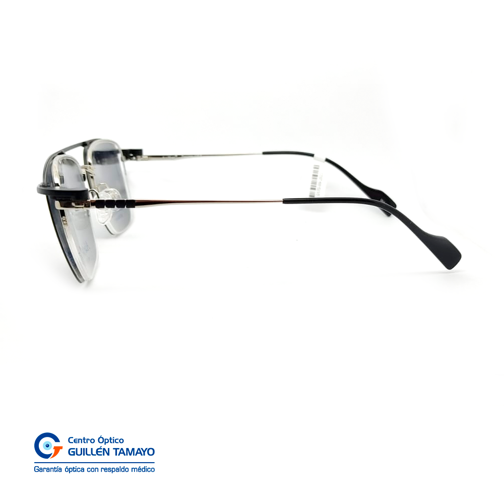 Frente De Montura Plateada, Varillas De Metal Color Plateado Con Detalles Negros Y Terminales De Acetato Negros.
