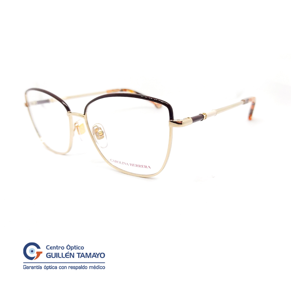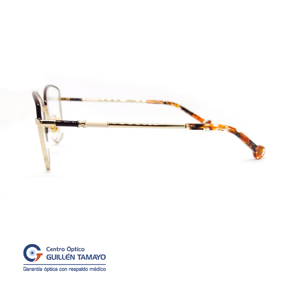 Frente De Montura Metal Dorada Con Borde Café, Varillas Metal Doradas, Con Terminales De Acetato Marmoleado