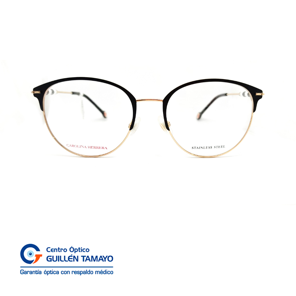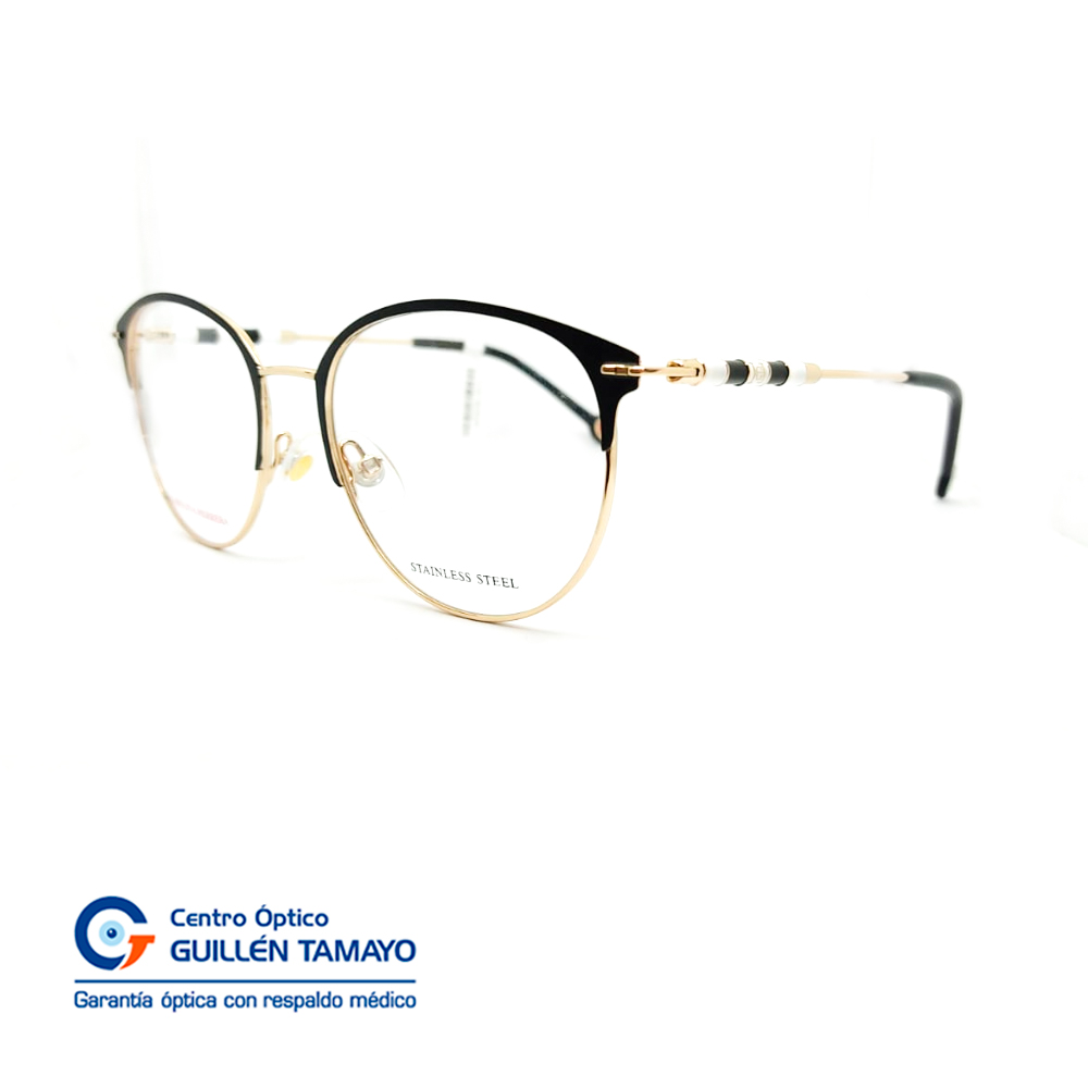 Frente De Montura Metal Negro Con Borde Inferior Dorado, Detalles Den Varillas Negro Y Blanco Metal Dorado, Terminales De Aacetato Negro Ch