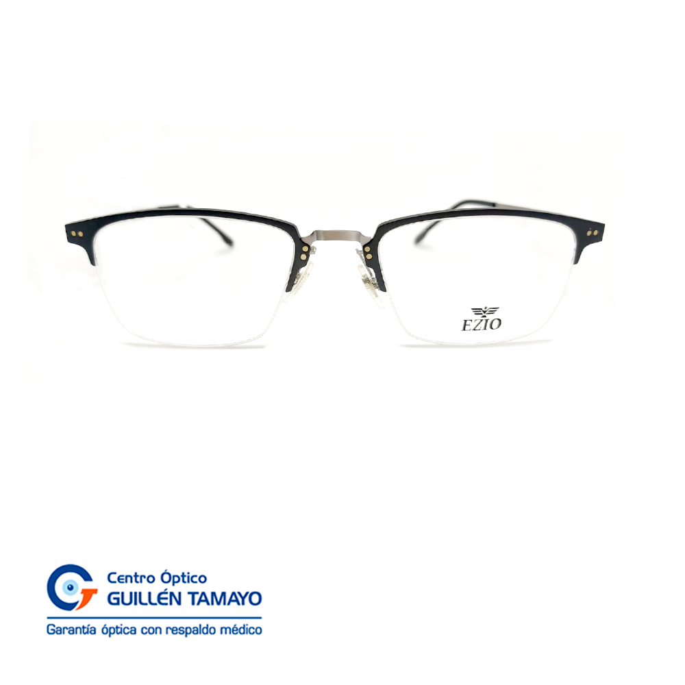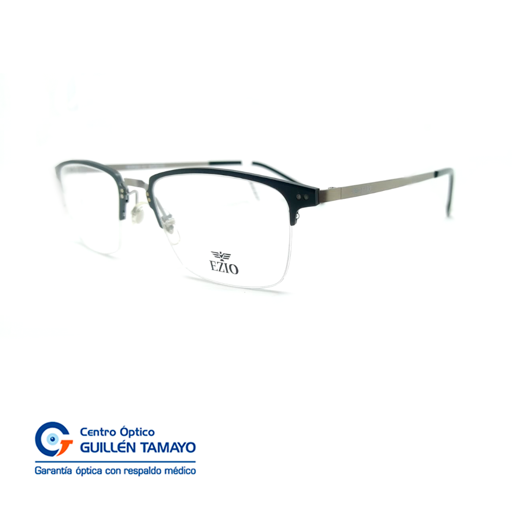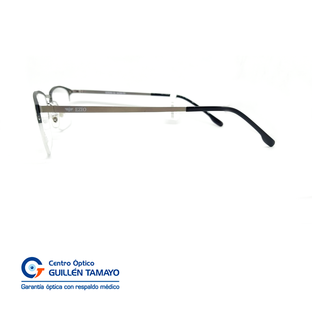 Montura Metal Plateada Con Frente De Montura Gris Y Terminales De Acetato Negro