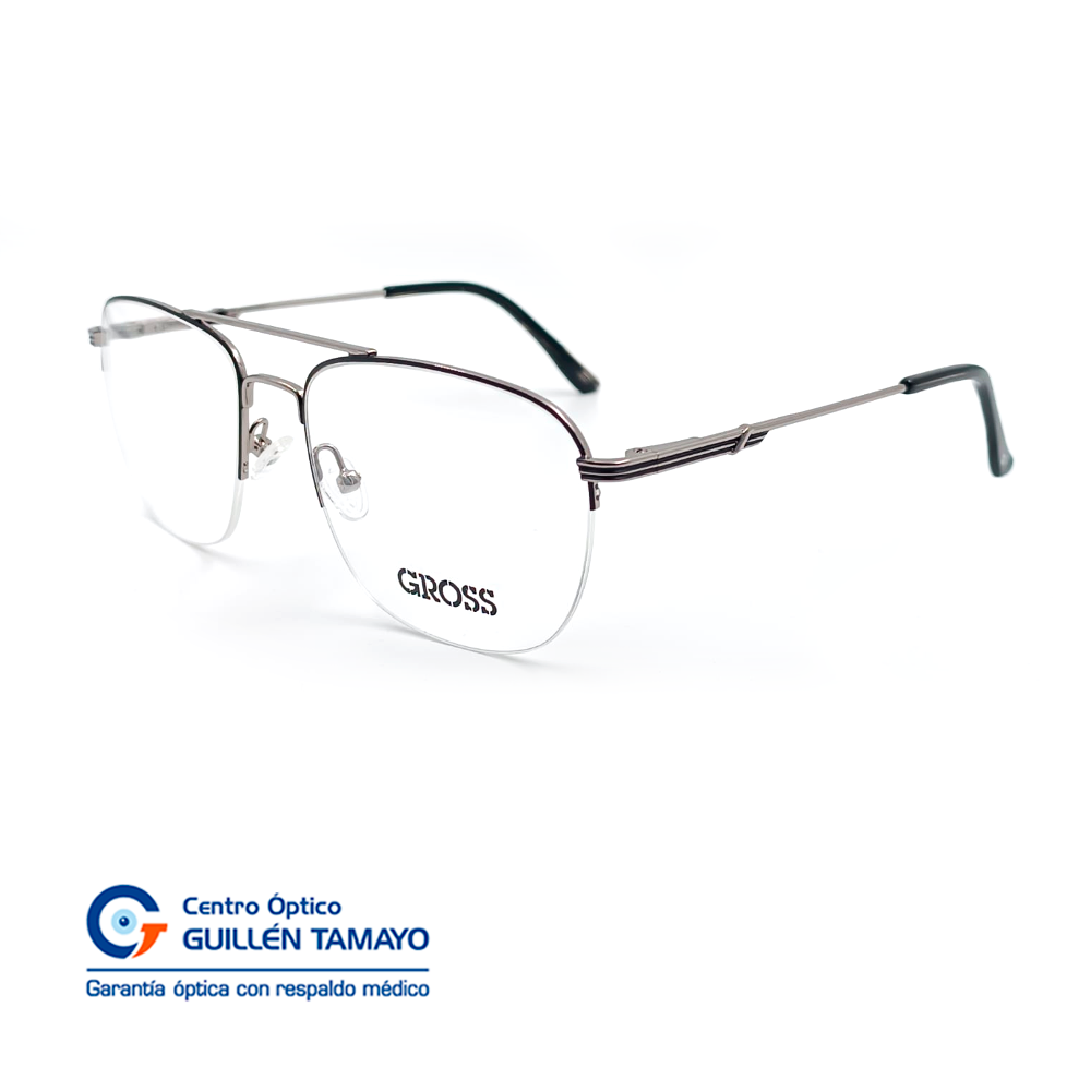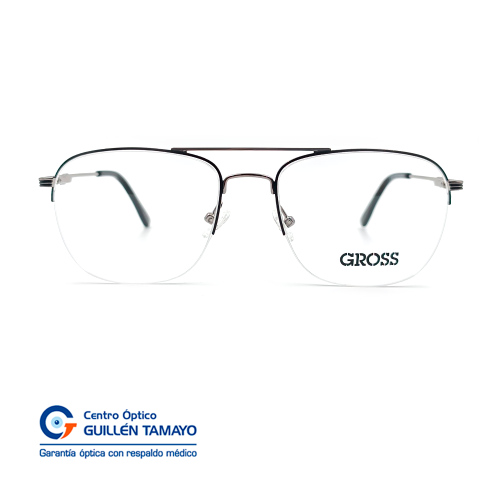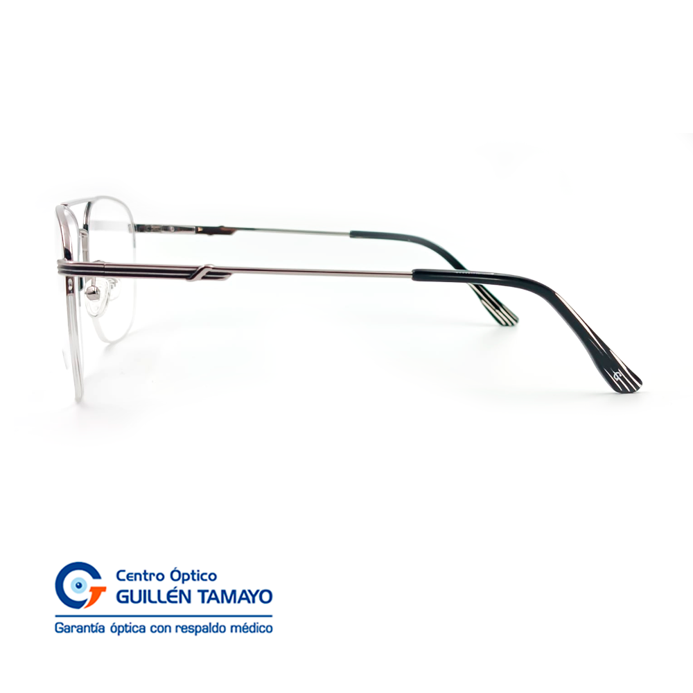 Montura Metálica Plateada Con Negra Y Terminales De Acetato