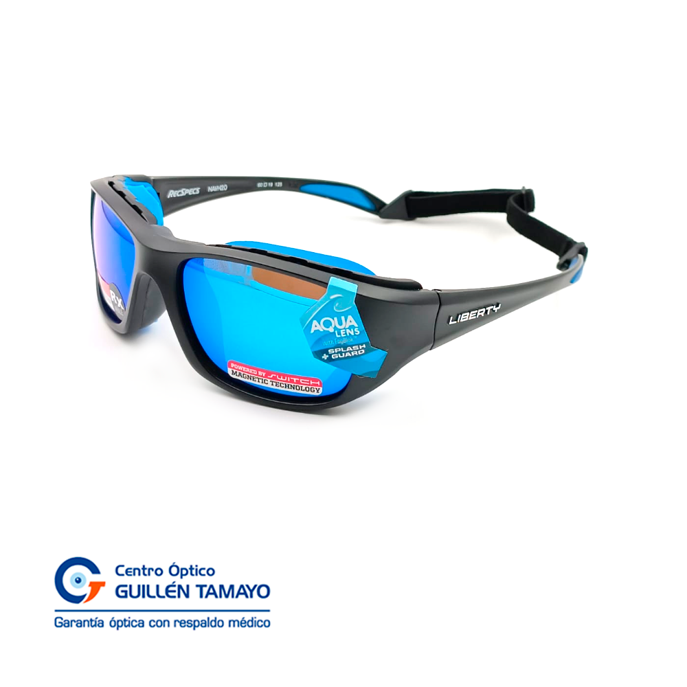 Montura Negra Espejado Azul Con Detalles Azul En Terminal De Varilla