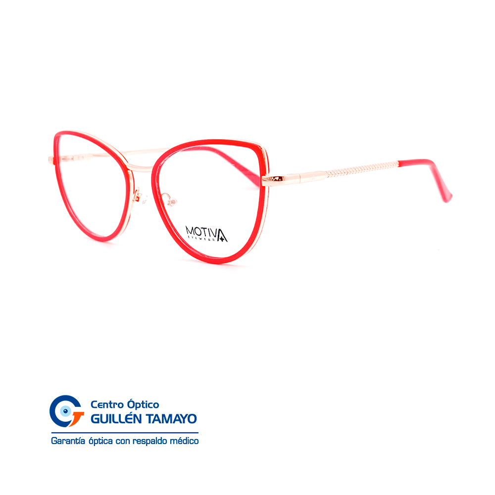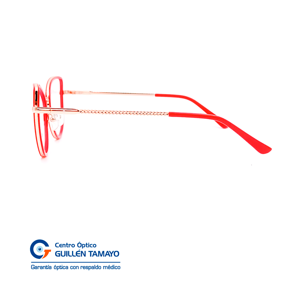 Frente De Montura Con Terminales De Acetato Rojos, Varillas Metal Doradas Trenzadas