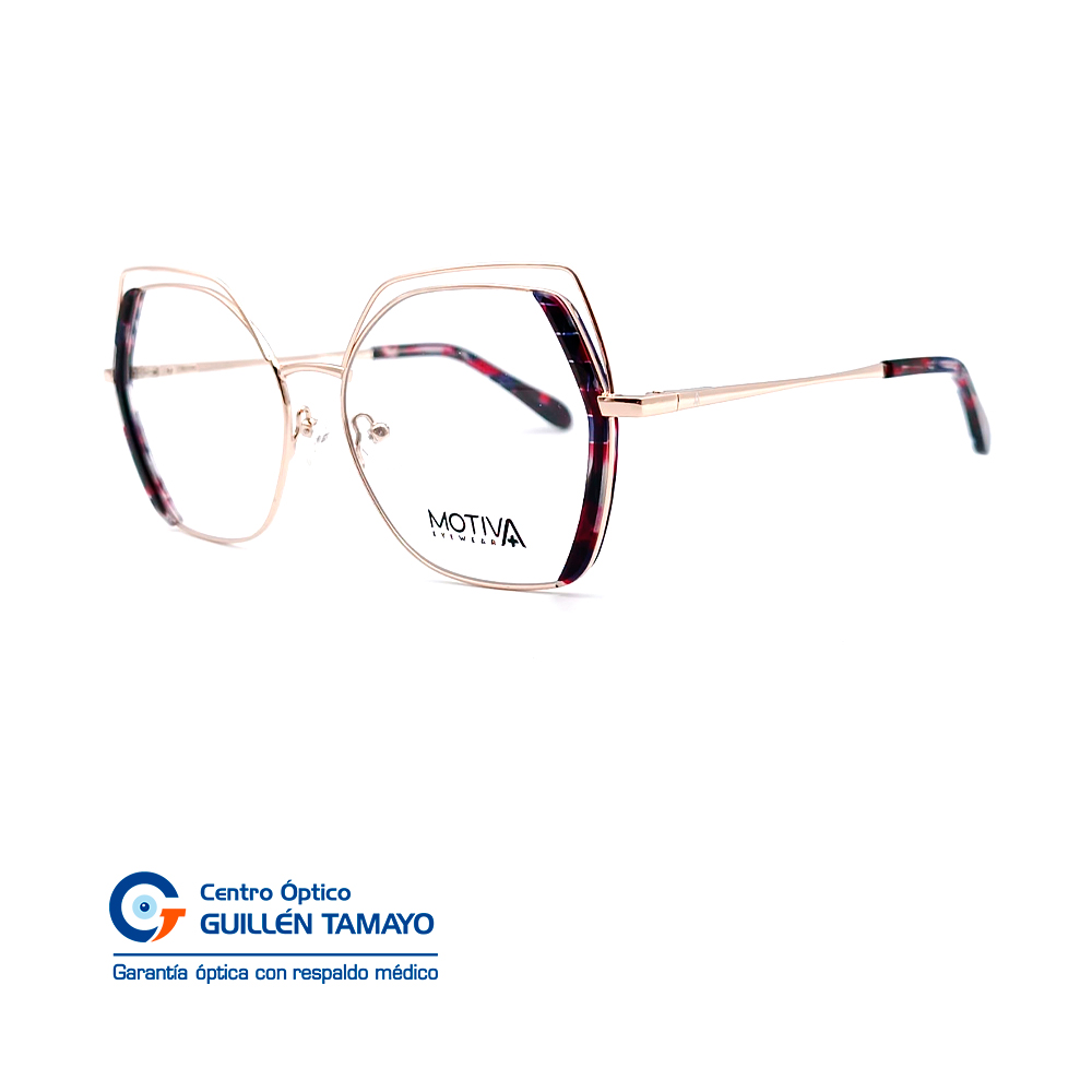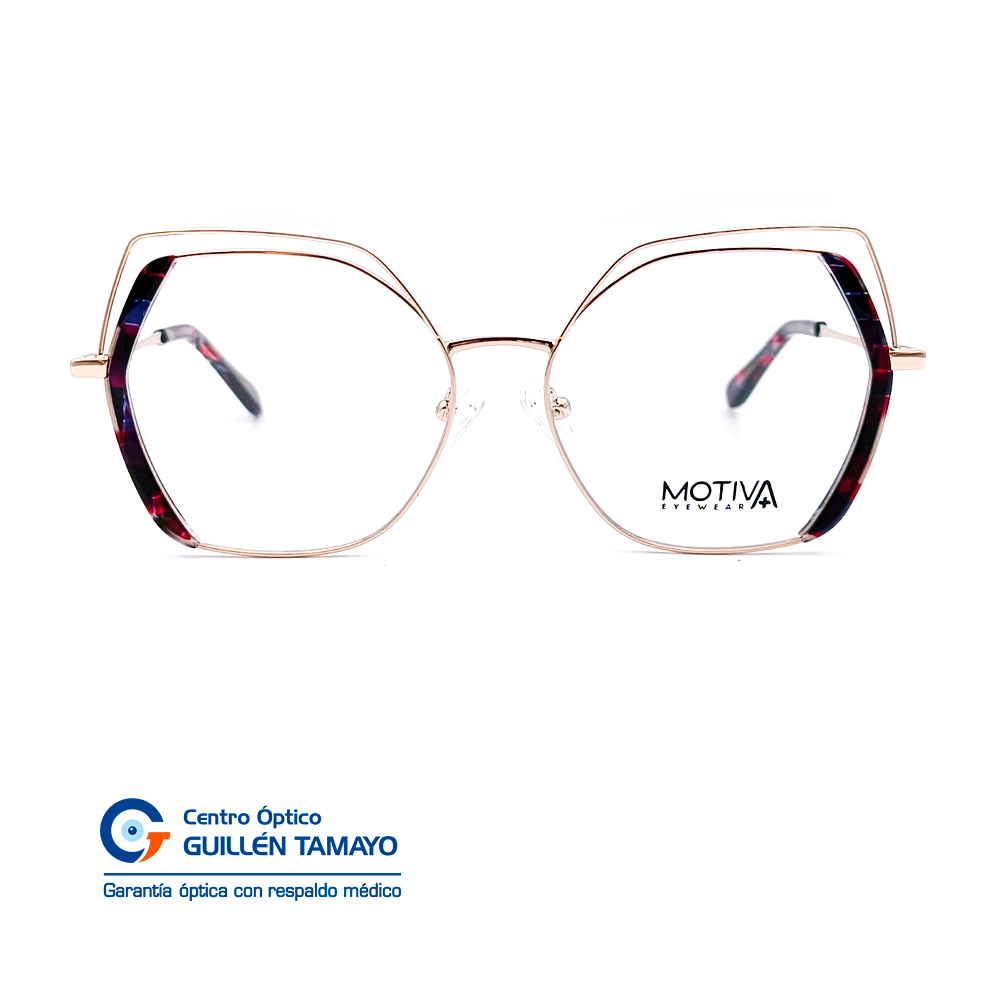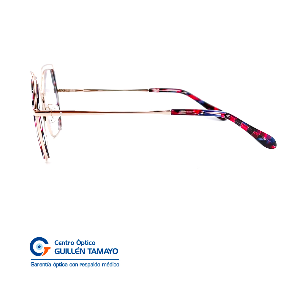 Frente De Montura Con Terminales De Acetato Azul Con Fucsia Marmoleado, Varillas De Metal Plateado