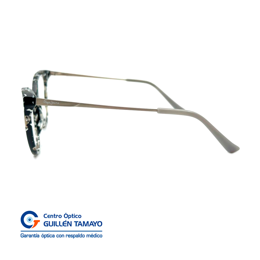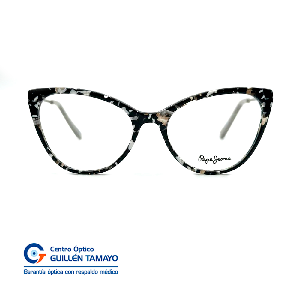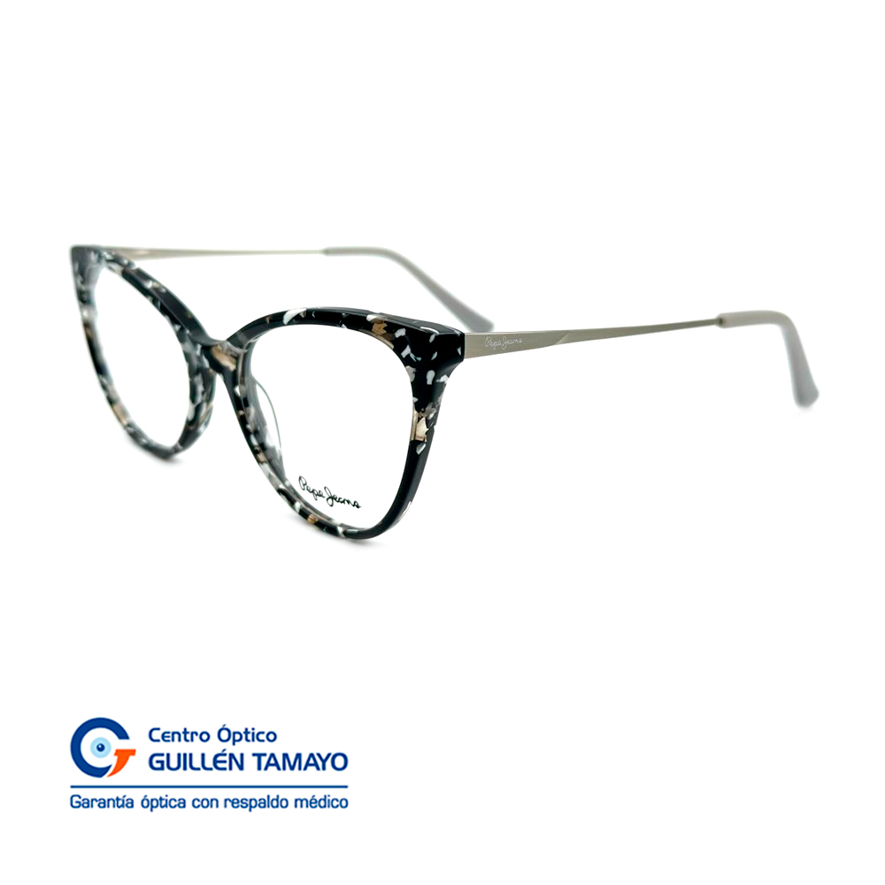 Frente De Montura Con Efecto Manchado Blanco Y Negro Con Inicio De Varillas Plateadas Y Terminales Plomos