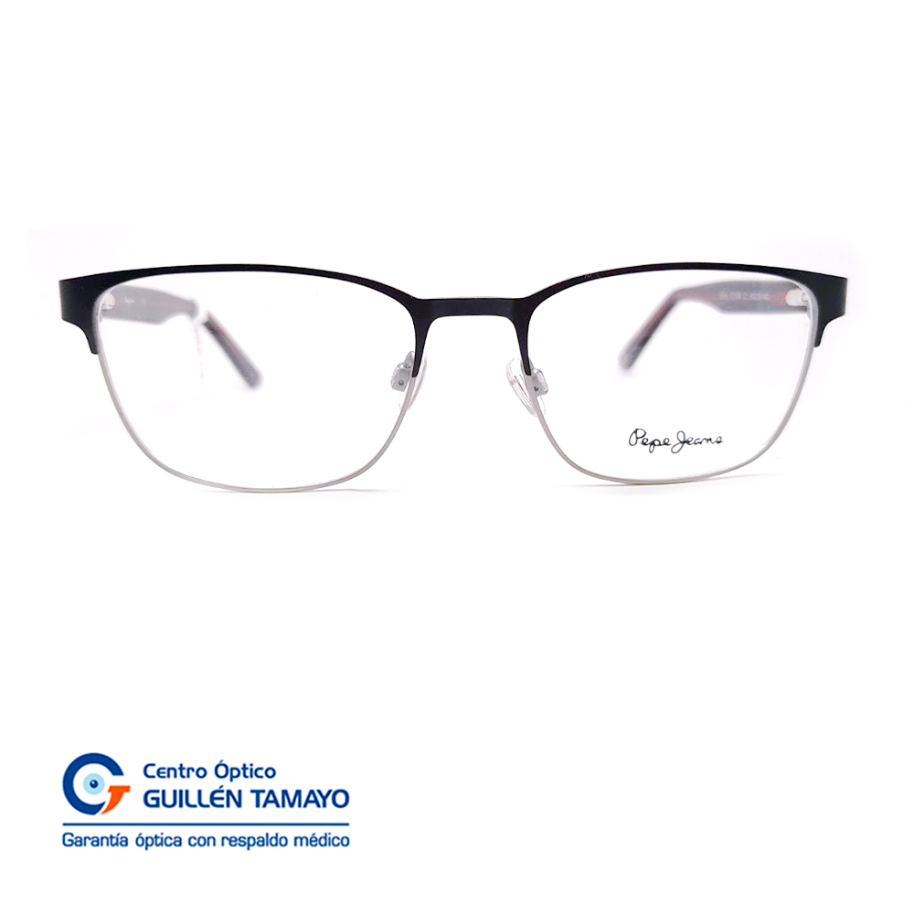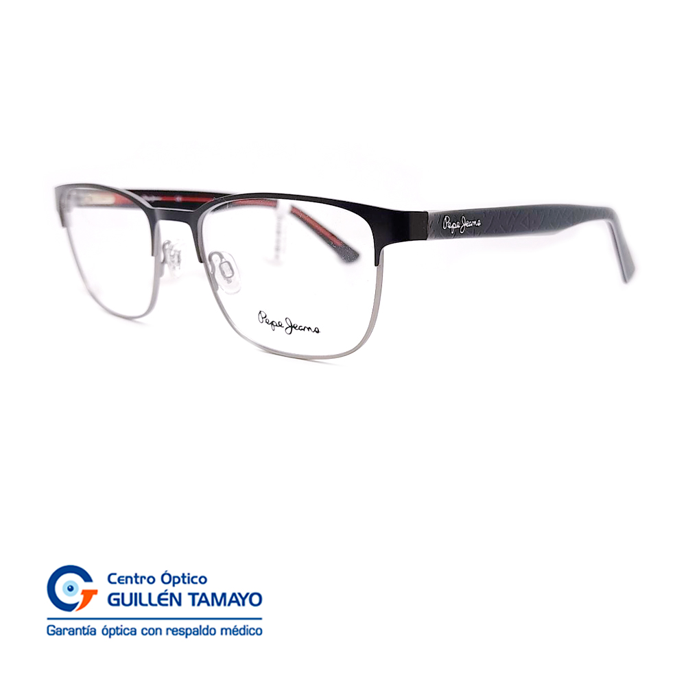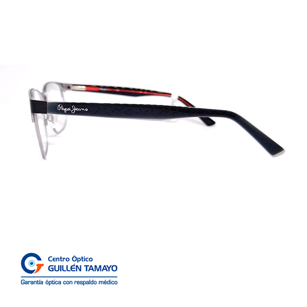 Frente De Montura Metal Negra Con Varillas De Acetato Gris En Relieve Pepe Jeans E Interior Rojo Lineal